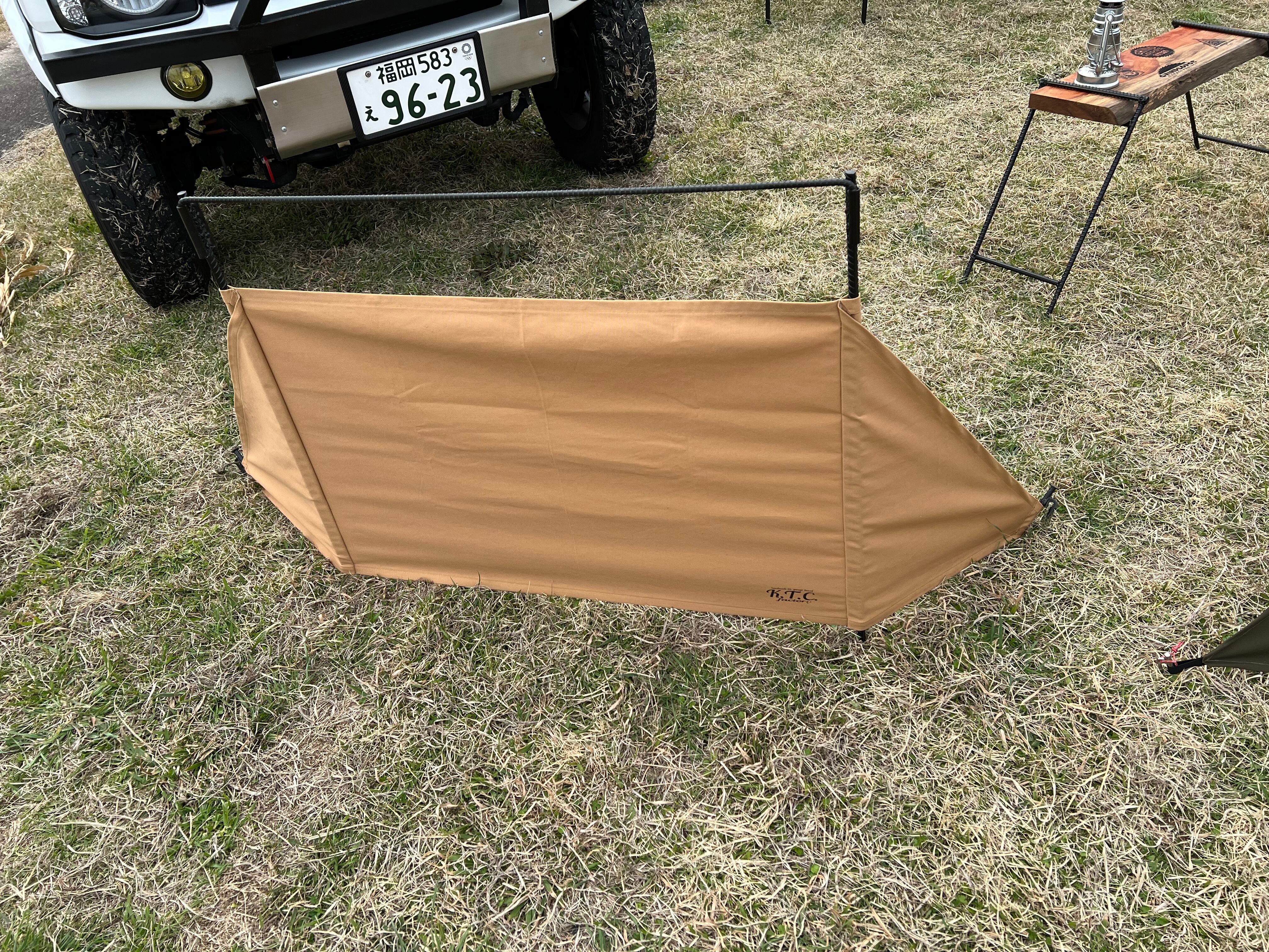 自立式ですので、面倒なガイロープは必要無し、ポールを打ち込める地面であれば設営可能です、900のポールですので300は地面に入ります。